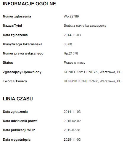 Wzór śruby montażowej zastrzeżony